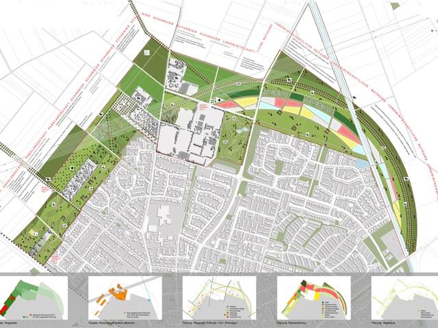 Auf diese Weise wird ein flächenintensives aber flexibles Modulsystem entwickelt, das auch im Falle der Nichtrealisierung der Umgehungsstraße seine Gültigkeit behält.