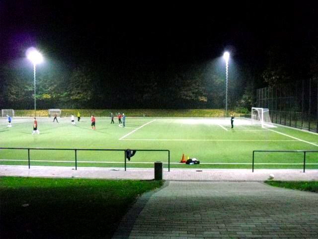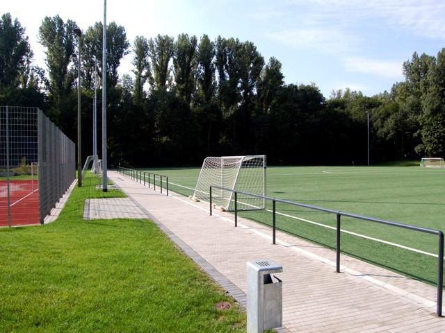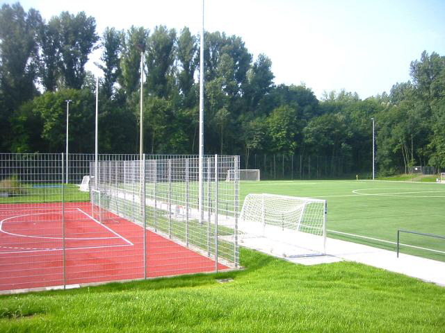 Sanierung des vorhandenen Tennenplatzes der Toni-Turek-Sportanlage an der Freiheitstraße in Erkrath und Umbau in ein Großspielfeld mit Kunstrasenbelag sowie Ergänzung eines Kunstrasenkleinspielfeldes und Sanierung eines vorhandenen Kleinspielfeldes aus Kunststoff. Die Trainingsbeleuchtungsanlage wurde auf Grund des fortgeschrittenes Alters komplett erneuert. Wegen des sehr hoch anstehenden Grundwasserstandes und um die Dränagen aus dem Grundwasser zu heben, wurde der Platz um ca. 50 cm angehoben. Eine Versickerung ist hier nicht möglich gewesen. Die Entwässerung ist an die in der Nähe vorbeifließende Düssel angeschlossen.