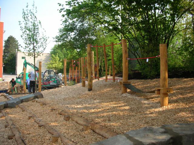 Kinder brauchen Angebote und Bewegungsmöglichkeiten, die sie zu vielfältigen Aktivitäten anregen und ihre Entwicklung fördern. Ihnen sollen Geräte zur Verfügung gestellt werden, die Denk- und Lernaufgaben beinhalten, ein überschaubar risikoreiches Spiel sowie abenteuerliche und selbstständige Herausforderung ermöglichen. Der Parcours sieht Elemente vor, die gezielt statisches und dynamisches Balancieren fordern. Zudem strukturiert er das Böschungsgelände. Gleichgewicht ist einer der elementaren Sinne, die Schulung des Balancierens dient daher der Körperbeherrschung. Der Parcours hat einen hohen Aufforderungscharakter und bietet vielen Kindern gleichzeitig die Möglichkeit sich daran zu erproben. Das Klettern und Balancieren an den einzelnen Stationen schult neben dem Gleichgewichtssinn auch das soziale Miteinander durch gegenseitige Rücksichtnahme. Die Kinder haben die Möglichkeit ihre Grenzen zu erproben.