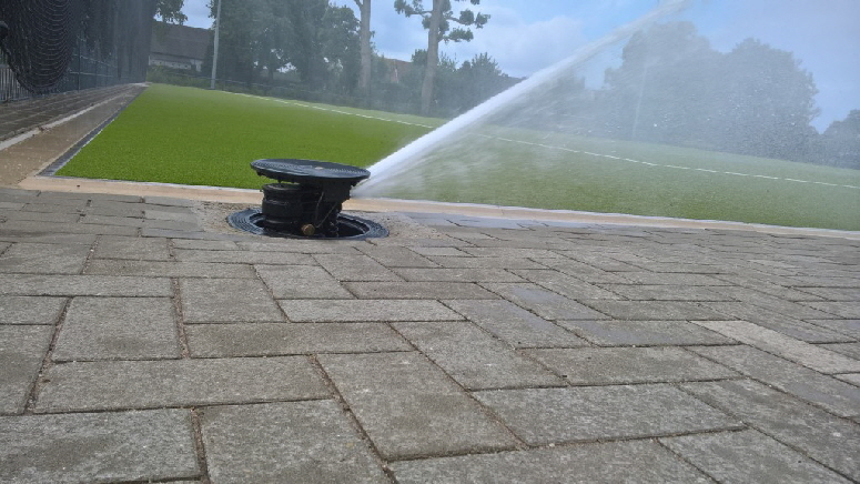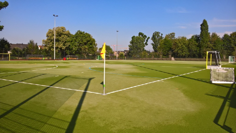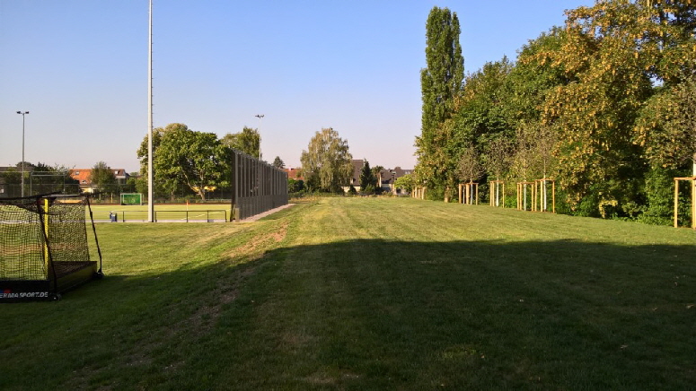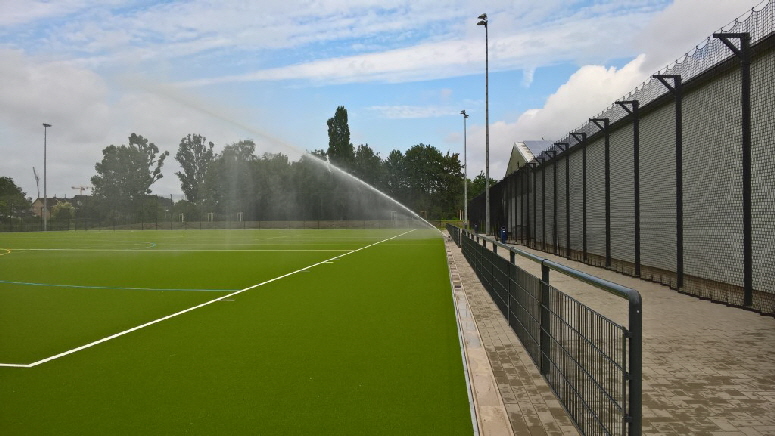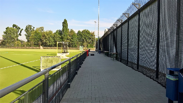 Die Bruttofläche zwischen dem vorhandenen Kunstrasenspielfeld im Südosten, der neuen Halle im Norden und der Sportanlage Sulzbachstraße im Nordwesten beträgt ca. 122 x 65 m. Die Sportanlage erhielt einen Hockeyvollkunstrasen. Die vorhandene 6-Mast-Trainingsbeleuchtungsanlage wurde an die veränderte Lage des Spielfelds angepasst. Die neuen Ballfangzäune und Barrieren wurden zusätzlich mit Prallbohlen und Ballfangnetzen ausgestattet.