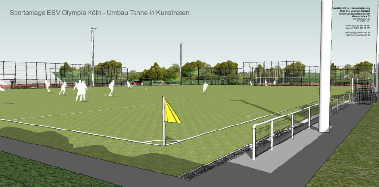 Die Baumaßnahme wurde im Rahmen des Bauförderungsprogrammes mit dem Verein umgesetzt. Die Baumaßnahme wurde mit insgesamt 87,5% durch das Sportamt der Stadt Köln gefördert, gedeckelt mit max. 600.000,- € brutto. Aus diesem Grund war eine sehr genaue Kostenberechnung mit einer regelmäßigen Kostenkontrolle erforderlich, damit möglichst viele der zahlreichen Vereinswünsche umgesetzt werden konnten und der zur Verfügung stehende Eigenanteil in Höhe von 12,5% nicht überschritten wurde. Die Baumaßnahme wurde im Kosten- sowie Terminrahmen abgeschlossen.