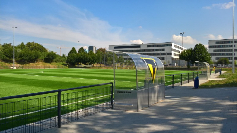 Aus Kostengründen wurde deshalb eine 4-Mast statt einer 6-Mast-Anlage realisiert. Die hindernisfreien Räume sind bei der Sanierung im Jahr 2004 auf allen 4 Platzseiten nicht eingehalten worden. Zur Korrektur müssen die Ballfangzäune und Barrieren weiter zurückgesetzt und das Spielfeld von 64 x 100 Metern auf 63 x 97 Metern verkleinert werden.