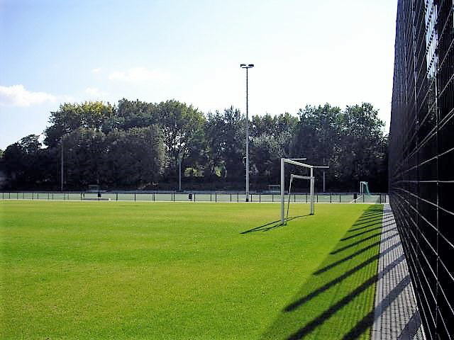 Im 2. Bauabschnitt folgte auf der nördlichen Seite ein Naturrasenplatz mit einer 50 Meter Sprintlaufbahn.