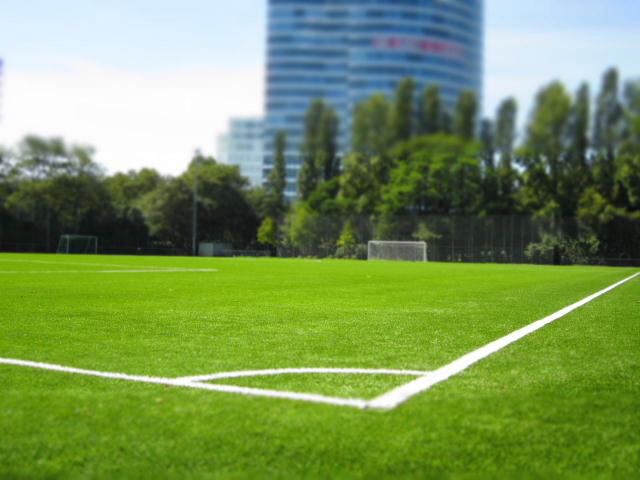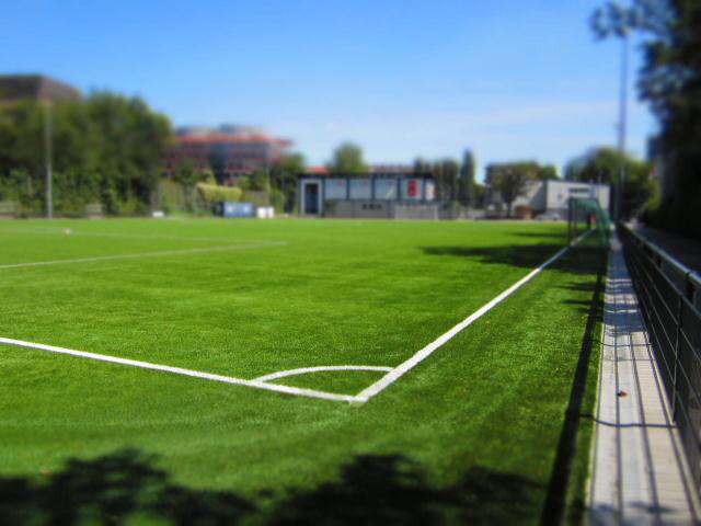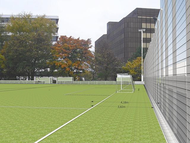 Die Anlage besteht aus dem Kunstrasensystem der 2. Generation und wurde Ende der 90-Jahre fertiggestellt. Der Kunstrasen liegt auf einer 14 mm dicken Regupol-Matte. Es handelte sich damals um einen Umbau eines vorhandenen Tennenplatzes. Auf die vorhandene dynamische Schicht wurden 5 cm Ausgleichsschicht 0/22 aufgebracht. Es ist geplant den Kunstrasenbelag unter Schonung der ET- Matte abzuräumen. Die ET-Matte bleibt insgesamt erhalten. Im Randbereich im Anschluss an die vorhandene Kastenrinne ist die ET-Matte um ca. 2 bis 5 cm geschrumpft. Die ET-Matte wird in diesem Bereich in einer Breite von 1,25 m geschnitten und eingekürzt und durch eine neue Bahn parallel zur Entwässerungsrinne ersetzt. Nach dem Abräumen des Kunstrasen ist davon auszugehen, dass die ET-Matte weiter schrumpfen wird und die Nahtbänder aufreißen werden. Deshalb ist vor Beginn der Kunstrasenverlegearbeiten die ET-Matte flächig Stoß an Stoß auszurichten und neu zu verkleben.