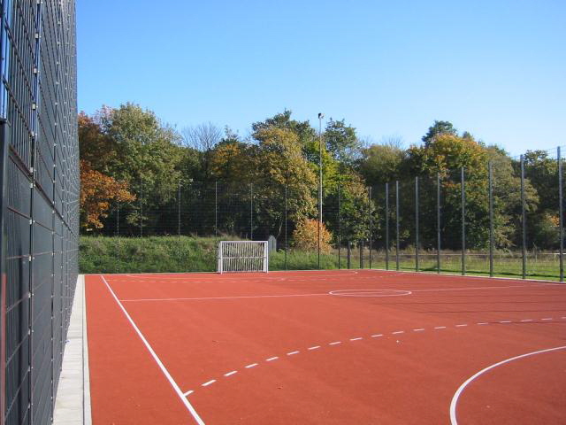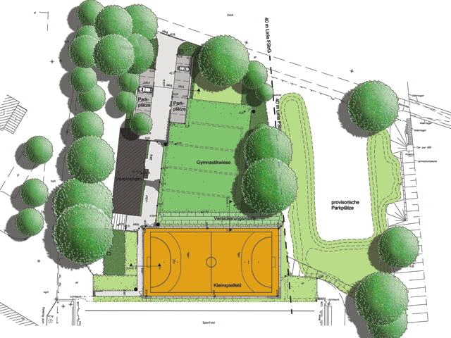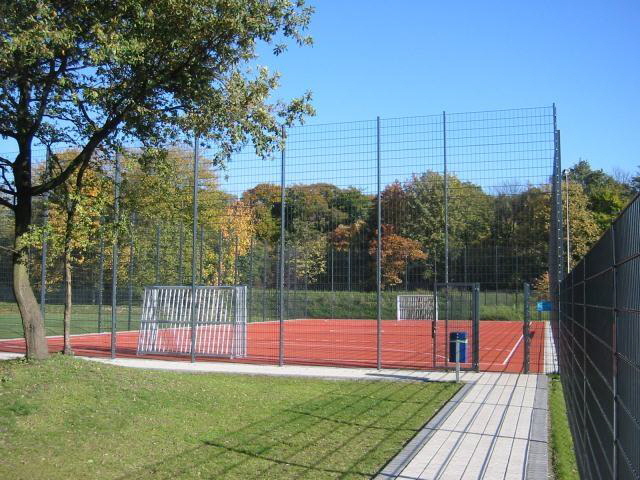 Bau eines Kleinspielfeldes am Lauftreff Düsseldorf mit Gymnastikwiese und Stellplätzen. Das Kleinspielfeld dient auch als Spiel- und Sportfläche für das angrenzende Wohnquartier und wird über einen Schließdienst auf und zugeschlossen, um in den späten Abendstunden Lärmbelästigungen der Anwohner auszuschließen. Die Gymnastikwiese dient dem Lauftreff als Aufwärmfläche vor Beginn des Lauftrainings.