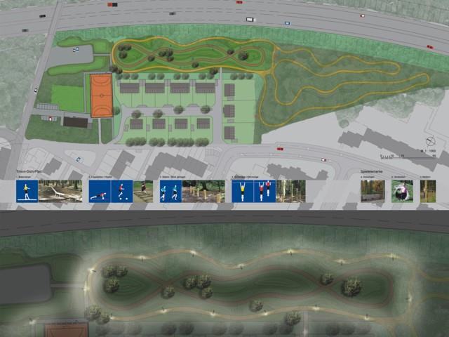 In einem zweiten Schritt wurde eine Machbarkeitsstudie (2006) für eine beleuchtete Laufstrecke für den Lauftreff auf dem umliegenden Gelände erstellt. Damals galt LED noch als innovativ. Die Planung wurde bis heute aber leider nicht umgesetzt.