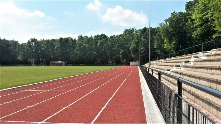 Als weiterer Bauabschnitt wurde bis zum Frühjahr 2015 die Tennenlaufbahn des Toni-Turek-Stadion saniert. Im September 2014 haben die Bauarbeiten zum Umbau der Kampfbahn begonnen. Die ersten beiden Bauabschnitte hat unser Büro auch schon geplant. Mit den Kunststoffarbeiten wird auch die Trainingsbeleuchtungsanlage sowie die Sitzstufenanlage auf den aktuellen Stand der Technik gebracht. Die nicht mehr verkehrssicheren Blockstufen wurden beseitigt, dafür wurden zum Bestand passgenaue Steh- und Sitzstufenelemente ergänzt und eingebaut. Die Trainingsbeleuchtungsanlage wurde auf der Ostseite um 3 neue Masten ergänzt. Für die Leichtathletikabteilung konnten Speerwurf, Hammerwurf, Diskus, Kugelstoßen und Hochsprung in das zur Verfügung stehende Angebot aufgenommen werden.